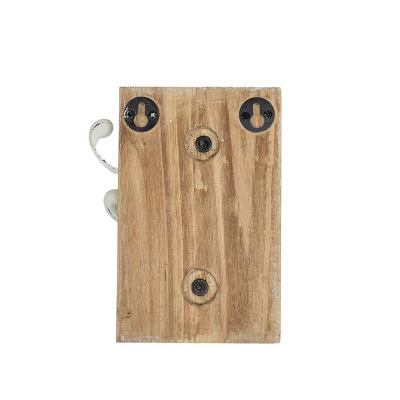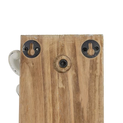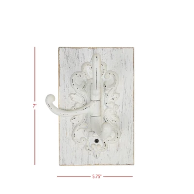 Enhance your traditional cottage style decor with this gorgeous multi-hook wall hanger. The white wooden base is paired with three cast iron hooks in a distressed matte white finish, accented by decorative flourishes at the top and bottom. The three hooks move around for a customizable hanging solution that also serves as a wall decor piece when not in use.