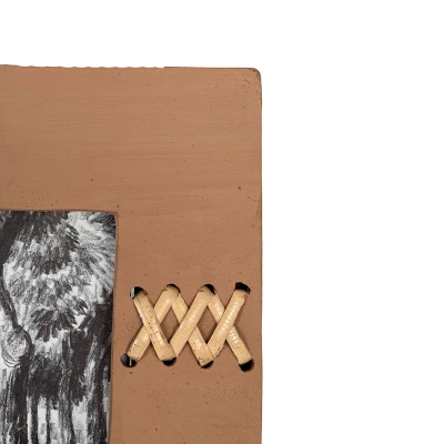An exclusive design by Foreside Home and Garden, a beautifully hand-crafted terracotta photo frame that will hold your favorite 4×4 photo. The natural terracotta is accented with a hand-wrapped rattan design that gives this picture frame a rustic vibe. Add this fun frame to your family photo display on a shelf or mantel.