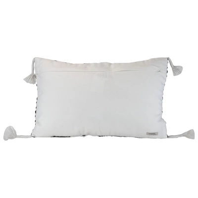 A modern boho pillow with no shortage of pattern makes this pillow a statement. The pattern mix is grounded by neutral black and white yarns and thread wrapped corner tassels that keep things interesting. Suitable both indoors and out and made of recycled PET plastic with quality you can feel.