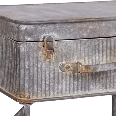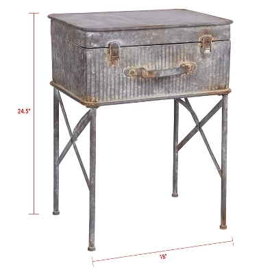 - Style: This metal side table features a fun vintage looking suitcase with a distressed finish. With its rustic style, this side table will fit perfectly with your favorite farmhouse inspired décor.