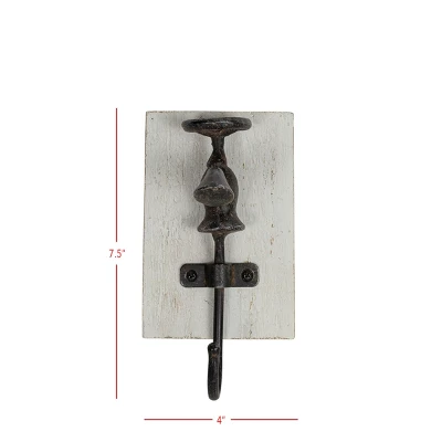 Infuse a bit of vintage farmhouse novelty with a fun faucet wall hook. The traditional faucet icon is made from cast iron and finished with an antique black that contrasts the white wooden base. Great for an entryway or mudroom, or a fresh addition to a garden shed for decorative organization.
