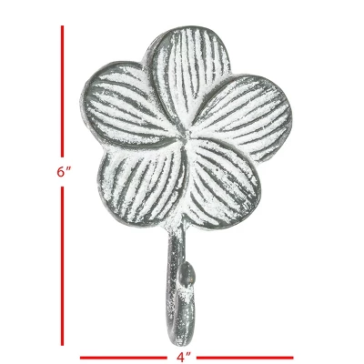 Enhance your home decor with this gorgeous charcoal cast iron floral hook from Foreside Home & Garden. The cast iron flower icon is washed with a matte white paint to accent the details of the petals. The simple design of this fun floral hook makes it a great place for keys, light jackets, or small accessories.