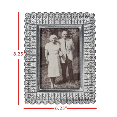 A cottage inspired 4×6 picture frame from Foreside Home & Garden makes a perfect addition to your traditional home decor. The gray frame has a folk-art style carved patterning in charcoal, washed in white to display your favorite photo. The glass front will help to protect your photo from dust and other damage. Easily styled on your shelf, desk, side table, mantel, or hung on a wall for a versatile display anywhere in your home.