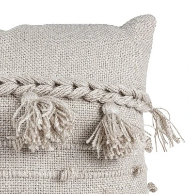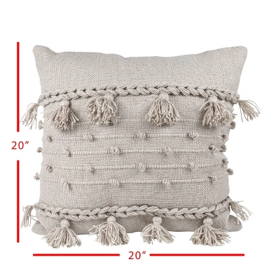 Rest comfortably in boho style with this unique pillow from Foreside Home & Garden. Heavy on texture with its braided stripe accents and multiple tassels. The small, subtle stripes with knotted accents make this a perfect pillow for boho or modern style decor. A great stand-alone statement piece or perfectly cozy, casual when layered. Hand-woven by artisans in India.