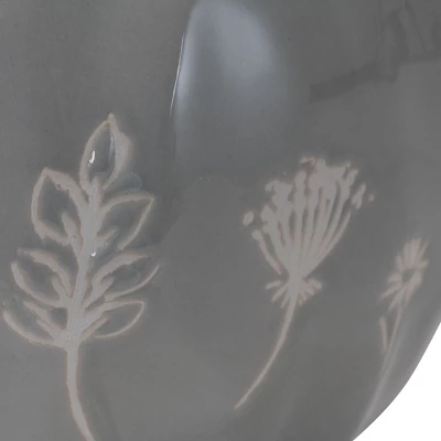 - The exclusive wax resist wildflower pattern enhances the gray glaze, adding a textural beauty.