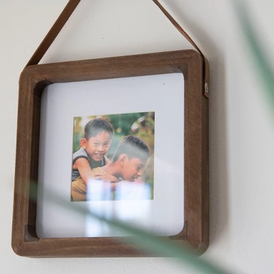 - Style: This wood picture frame features a chunky wood frame and an faux leather strap to easily hang on your wall. With it’s modern style, this frame will fit perfectly with your favorite décor.