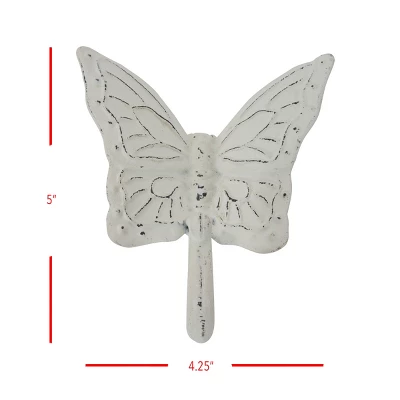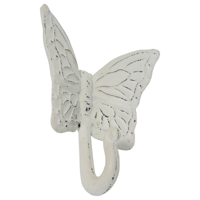 - Distressed matte white finish with charcoal undertones enhances the cast details of this wall hook.