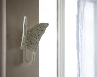 Add a touch of whimsy to your walls with the Flora Wall Hook. This cast iron hook features a simple shape with a chalk-paint like white with charcoal undertones. Great for decorative purposes as well as a functional hook for holding your favorite accessories or garden tools..