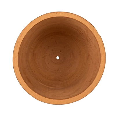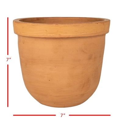 Hand thrown by artisans in India, this terracotta pot is a great accent for your rustic aesthetic. Made from high quality natural terracotta clay, this piece will make a statement in the home or garden spaces with a bold colored plant. Simple in design, yet a beautiful natural color clay to brighten up any home.