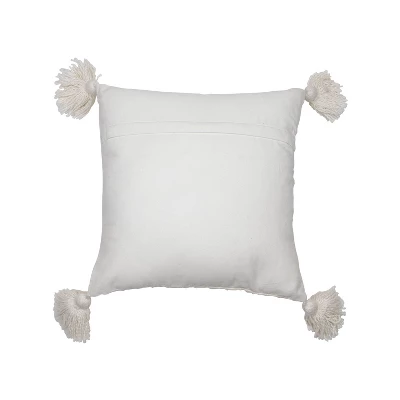 Elegantly smooth and absolutely cozy, the 18X18 White Hand Woven Kira Pillow by Foreside Home & Garden is a tender addition to any room in your home. The soothing solid color of this pillow, textured by small french knots is made even richer by the lovely tassels that rest at each of its corners. This soft and subtle display makes the pillow a truly charming spot to rest your head.